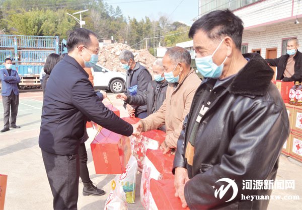 紅十字會在東源縣澗頭鎮礤娥村舉行2022年春節紅十字博愛送溫暖慰問活動,現場為該村低保戶、五保戶、殘疾人等40戶特困群眾發放慰問物資一批。