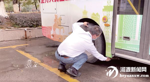 近日,記者來到河源市粵運綠都公交公司位于火車站的調度點,看到了10路公交車駕駛員陳國意。同往常一樣,他正在檢查車況,為了待發車時間一到,能平穩地駕駛,將每一位乘客安全送達目的地。