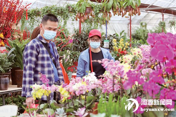 各種花卉讓新年紅勝火,不少人穿梭在花叢中,尋找最適合擺在家里的“年味”。