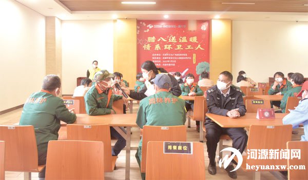 除市客家文化公園志愿驛站外,團市委還聯合河源陽光義工服務隊和河源市好人互助聯合會志愿者服務隊在東江灣公園志愿驛站、文化廣場志愿驛站開展臘八節活動,志愿者們為市民和環衛工人送上暖暖的臘八粥,與大家一起品嘗臘八粥,共度臘八節。