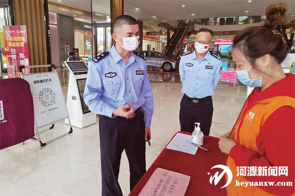 甘敏(左一)到轄區場所了解治安情況。