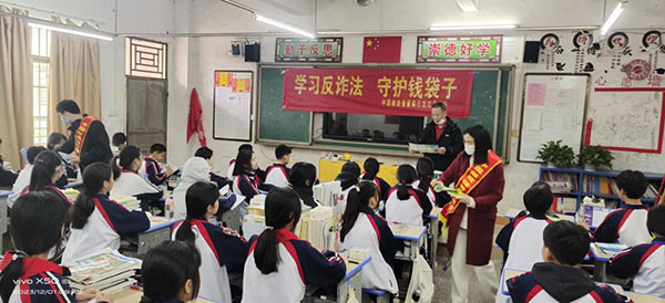本報訊 記者 劉奇峰 通訊員 葉國平 為有效防范電信網絡詐騙違法犯罪,全面提升學生自我防范意識能力,切實保障人民財產安全,近日,郵儲銀行龍川縣支行到龍川縣老隆鎮新城初級中學開展防電信網絡詐騙宣傳活動。