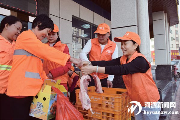 為環衛工人送豬肉。(資料圖)