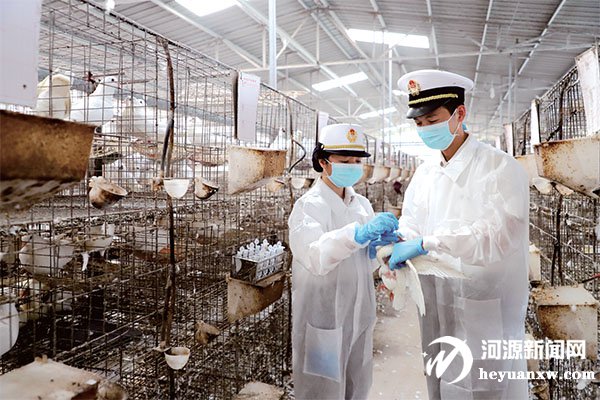 河源海關關員到鴿子養殖場開展檢驗工作。