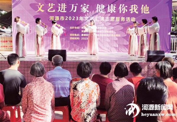 26日,由市文聯、市流行音樂協會志愿服務隊主辦的河源市2023年文藝匯演志愿服務活動走進源城區東埔街道建設大道社區,以文藝表演的形式唱響文明之聲,邀居民共享美好文化生活。活動現場,舞蹈、男聲獨唱、女聲獨唱、樂隊演奏、葫蘆絲合奏等形式豐富多樣的節目輪番登臺,為居民獻上一場精彩絕倫的文藝盛宴。