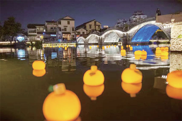 暢行于官河水街,黃巖城深藏的宋風雅韻撲面而來,夜色燈影,沿河立市,煙柳畫橋,風簾翠幕,那臨水閣樓,黛瓦飛檐,仿若回到千年的宋城。原有的官河古道,已沒了蹤跡,高低不平的青石板路,已被整齊劃一的大麻石板替代。那水已流淌千年,隱隱約約還有歌聲從那五洞橋邊飛來,隨風散落人間,那歌呀,是細膩至柔的越劇。在幾里開外的河對岸,浪漫的幸福島旁,年輕人邀歌勁對,歌聲起起伏伏,時尚今聲與吳儂軟語在這里穿越時空交織在一起,儼然一幅和樂幸福的圖景,且又多了一份宋代黃巖詞人嚴蕊的“若得山花插滿頭,莫問奴歸處”的閑情與逸趣。