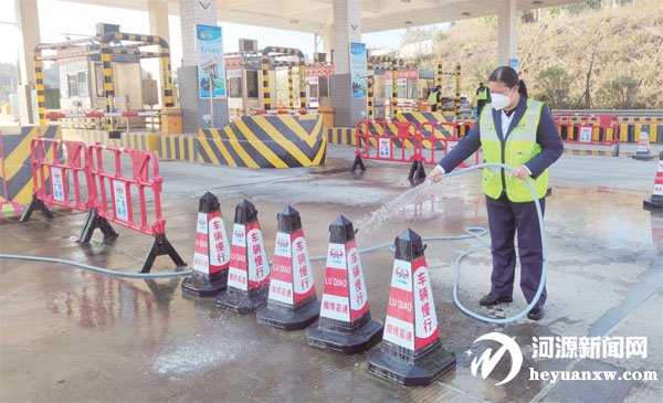 揭博高速工作人員清洗路錐,為駕駛員創(chuàng)造良好道路環(huán)境。