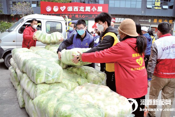 前日,3000公斤青菜從河南信陽運到河源市區,免費送給社區居民及各志愿者組織,得到了大家的點贊。