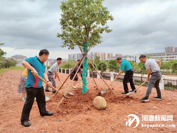 市衛(wèi)生學(xué)校領(lǐng)導(dǎo)與73屆校友共同在學(xué)校“校友植樹點(diǎn)”種下一棵蘊(yùn)含著校友深厚情誼的樟樹,祝福母校。