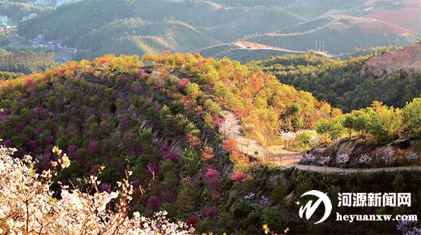 據了解,虎竹嶂梯田花?偯娣e1500余畝,現種植觀花品種有近20種,主要以櫻花、黃花風鈴木、紫花風鈴木、紫玉蘭、宮粉紫荊等品種為主。其中櫻花面積約為600畝,分為富貴櫻和廣州櫻兩種。