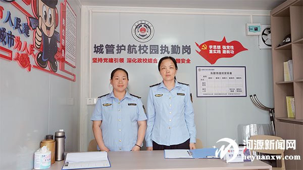 城管護航校園執勤崗。本報記者 吳心怡 攝