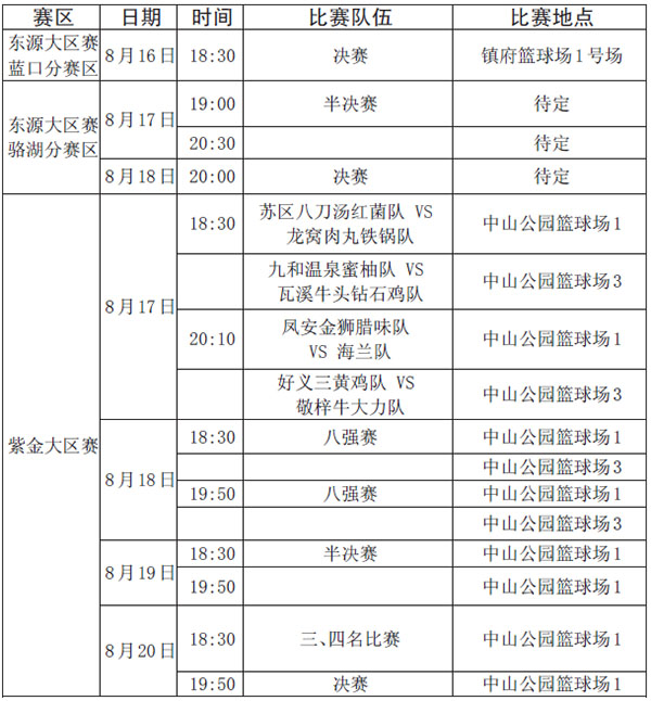 “華豐金灣杯”2024 河美共贏籃球聯(lián)賽賽程表(8月17日-8月23日)