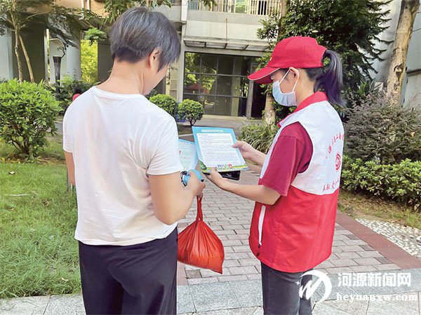 志愿者為居民普及垃圾分類知識。