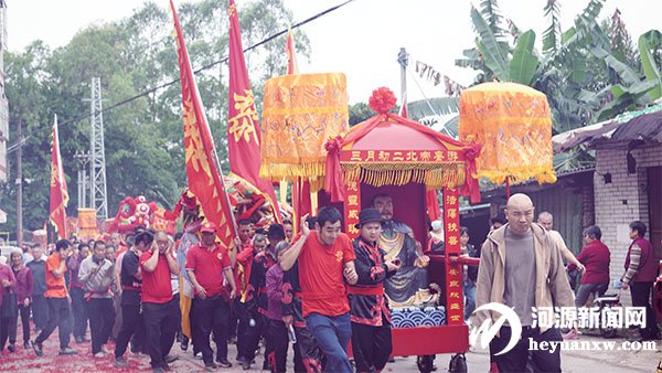 按照當?shù)仫L(fēng)俗,巡游活動于當日上午9時啟動,鼓樂開路,鞭炮齊鳴,龍舞、獅舞、春牛舞、紙馬舞等民間藝術(shù)熱鬧登場,場面盛大。北帝公神像所到之處,村民都紛紛跑出來燃放鞭炮歡迎。一行人浩浩蕩蕩繞村而巡,紅紅火火,熱鬧非凡。