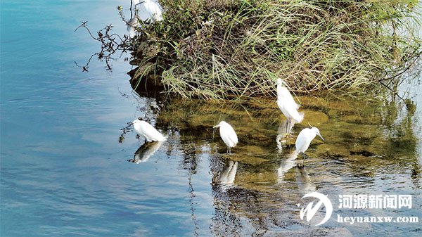 近日,河源東江流經(jīng)東源縣城河段出現(xiàn)成群白鷺,它們在碧波中翩躚起舞。記者 曹志成 攝