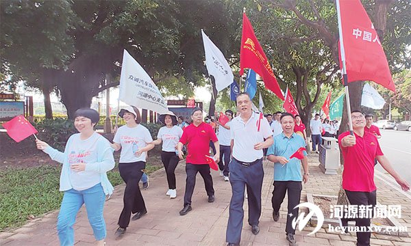 活動現場,各保險公司設置宣傳展臺,為公眾發放金融知識普及相關宣傳手冊,講解保險知識。啟動儀式后,全體人員整齊有序地站在起點線前,隨著一聲哨響,邁開矯健的步伐,踏上了規劃的路線。領隊人員手舉代表著各家保險公司的旗幟走在前方,身后的參與者們也紛紛揮舞著小紅旗緊隨其后,大家臉上洋溢著熱情的笑容,精神抖擻地向著終點前行。健步走隊伍穿梭在河源的大街小巷,為城市增添了一處耀眼的風景線,展示了河源市保險行業從業者們團結協作、積極向上的精神風貌,同時也向公眾傳遞了健康生活和保險保障的重要性。
