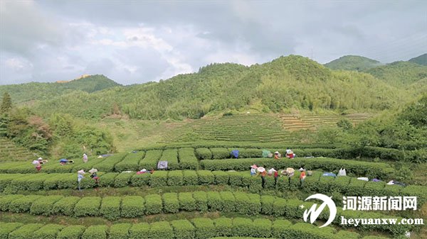 武頓山下,韓江源頭,山水如畫,茶香萬家。正值夏茶采摘期,在紫金縣南嶺鎮(zhèn)莊田村,茶樹沿著山坡呈階梯式分布,漫山的茶樹泛起綠色漣漪,與藍(lán)天白云相映成趣。茶園里,茶農(nóng)背著竹簍,行走在茶壟間,仔細(xì)采摘新葉。據(jù)了解,莊田村積極整合各類資源,培育多家特色茶企,唱響鄉(xiāng)土品牌,把茶產(chǎn)業(yè)打造成為村里的支柱產(chǎn)業(yè)。目前,莊田村茶葉種植面積超8500畝,茶葉年產(chǎn)值超1.2億元。