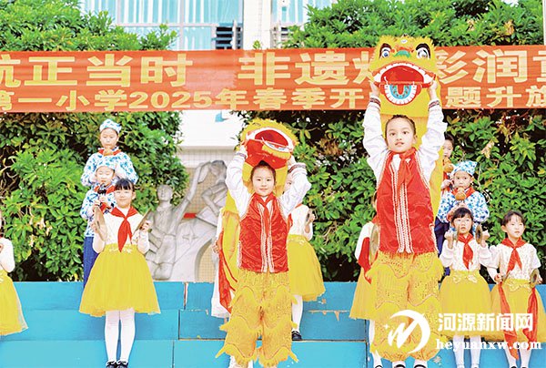 河源市第一小學舉辦了以“揚帆起航正當時 非遺煥彩潤童心”為主題的開學儀式。在操場主席臺上,一場精彩的舞龍舞獅表演——《龍的傳人》拉開了序幕,“巨龍”與“獅子”在激昂的鼓點聲中翻騰起舞,充分展現了非遺的獨特魅力。學生們坐在臺下聚精會神地觀賞,被表演者的精湛技藝深深吸引。該校黨總支書記羅振豐寄語學生要以非遺為紐帶,傳承中華優秀傳統文化,堅定文化自信,讓中華優秀傳統文化的基因融入血脈,讓創新精神成為青春的動力。