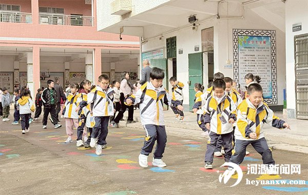 河源市第二小學(xué),下課鈴響起,學(xué)生飛快地奔向操場(chǎng),校園變成“歡樂(lè)海洋”。
