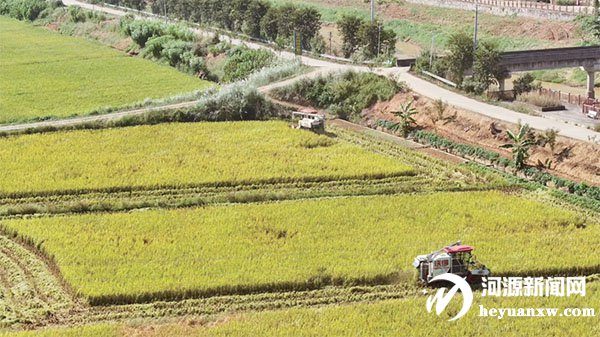 豐收畫卷美 千畝晚稻開鐮 龍川縣龍母鎮(zhèn)機械化助力顆粒歸倉
