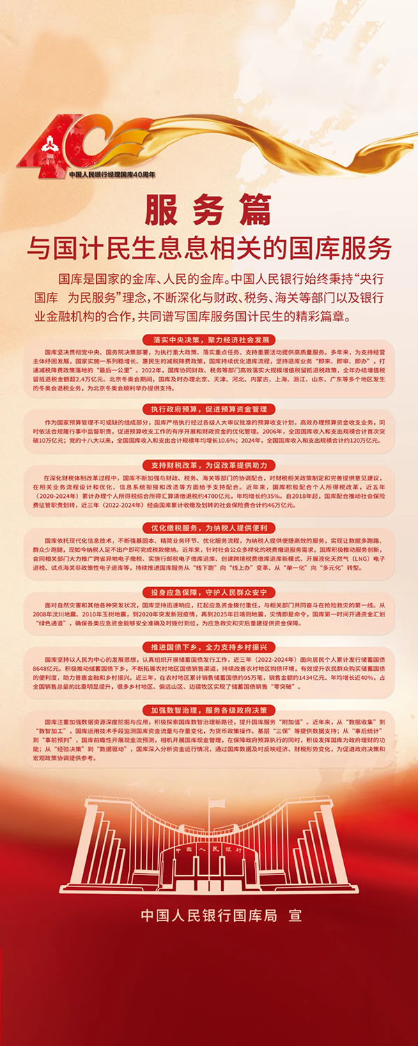 “人民銀行經理國庫40周年”主題宣傳之“歷史篇”、“職能篇”、“服務篇”、“成效篇”、“未來篇”