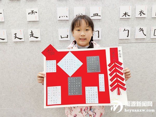 河源市第四小學學生展示自己的寒假作業(yè)。