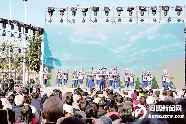 隨著開場舞《盛世歡歌》的登場,舞者們用熱情洋溢的表演展現了客家人的熱情和客家文化的魅力,也讓人們感受到“百千萬工程”助力下東源產業發展、文旅融合碰撞出的奮斗的火花。緊接著,一系列精彩節目輪番上演,有《給你一點顏色》《愛火花》《畬鄉·藍》等表演,還有由本土唱作人李郁聲創作的《祿鄉情》。其中,廣東原創追龍主題歌《追龍》唱響對家鄉的熱愛。
