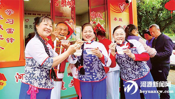 河源市文化廣場志愿驛站,市民歡歡喜喜吃湯圓。