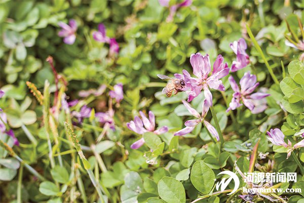 花朵引來蜜蜂。記者 劉奇峰 李馨 攝
