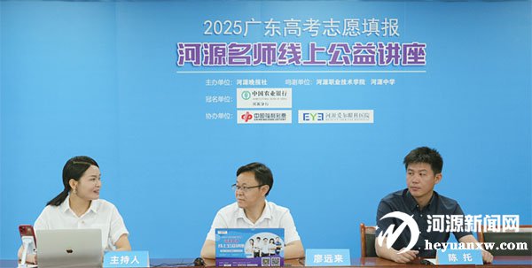本報訊 記者 李馨 27日,2025廣東高考志愿填報河源名師線上公益講座在河源晚報社舉行。本次講座由河源晚報社主辦,中國農業銀行河源分行冠名,河源市福利彩票發行中心、河源愛爾眼科醫院協辦,并得到了河源職業技術學院、河源中學的大力支持。
