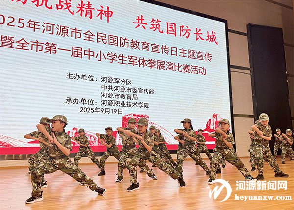 本報訊 記者 鄧宇珊 近日,2025年河源市全民國防教育宣傳日主題宣傳暨全市第一屆中小學生軍體拳展演比賽活動在河源職業技術學院(以下簡稱“河職院”)舉行。