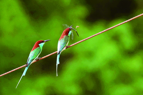 藍喉蜂虎現身萬綠湖