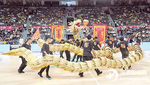 前晚,東莞銀行籃球中心沸騰不已,廣東男籃與山西男籃系列賽G3對決現場,河源“天祿香火龍”震撼亮相,為廣東隊加油助威。