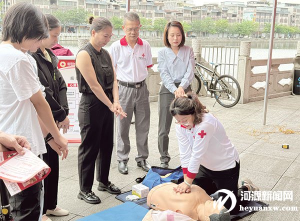 志愿者現(xiàn)場演示心肺復(fù)蘇。