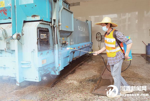 工作人員對垃圾中轉(zhuǎn)站進行消殺。