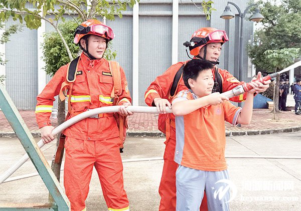學(xué)生“零距離”接觸消防裝備。