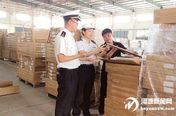 河源海關關員到家具出口企業(yè)進行現(xiàn)場監(jiān)管。