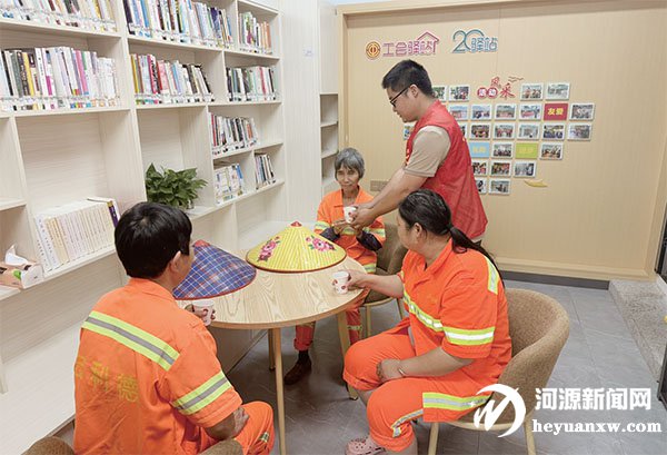 保潔阿姨王姐忙完一天的工作后,常來服務站休息。她滿臉笑容地對記者說,服務站啥都有,渴了能喝水,餓了能用微波爐熱飯,還有急救藥箱以防萬一,就跟咱自己的家一樣貼心。