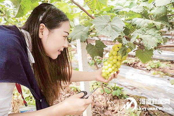 夏日炎炎,源城區埔前鎮雙頭村雙頭水果博覽園里卻彌漫著一股清甜的氣息,這里的陽光玫瑰葡萄迎來了成熟上市的季節。